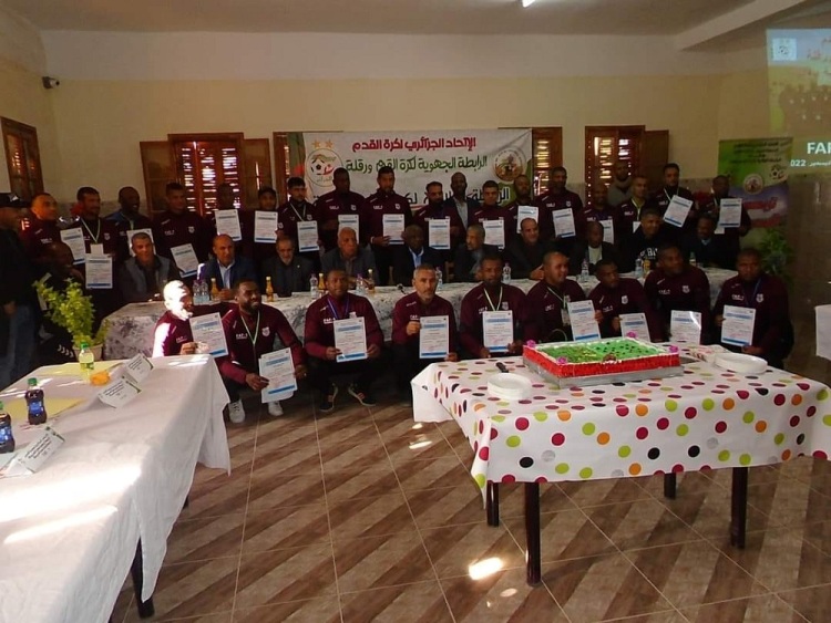 Le Mardi 13 Décembre 2022 Mr KAHLOUL Djelloul, Président de la Ligue, a procédé a la Cloture du Stage FAF-1 en présence de Messieurs :